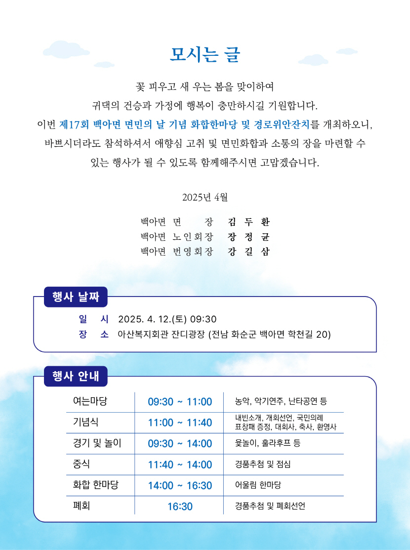 [초대장&봉투] 백아면민의날 초대장2